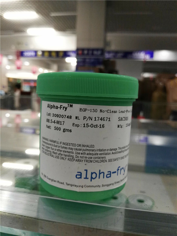 產品說明:Alpha-Fry EGP-130 焊膏的助焊劑系統是針對精密間距無鉛應用而特別配方的免清洗 REL0 類產品,在連續表面貼裝印刷時可保證穩定的粘性和觸變性。產品配方包括 SAC305(96.5%Sn/3.0%Ag/0.5%Cu)和 SAC0307(99%Sn/0.3%Ag/0.7%Cu)等合金配方。該產品還具有優異的耐高溫預熱性、抗超精密間距焊盤溶解以及降低焊球缺陷等屬性